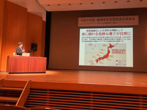 岡山県環境衛生協会倉敷支部(岡山県備中県民局)主催「環境衛生民間指導者研修会(備中ブロック)」で記念講演の講師を務めた。備中地域における地域の環境保全活動の担い手など約150名に、地球温暖化の現状と家庭や地域でできる温暖化対策について一部参加型の講演を行った。