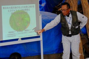 仙台二華中学校では、毎年「ヨシ原の機能、ヨシ原と里山環境の学習」「震災により減少したヨシの移植」「干潟の動物の観察」を行っている。震災後、東北地方では唯一の生息地となった北上川水系のヒヌマイトトンボの重要性、生態、保全の取り組みを紹介した。