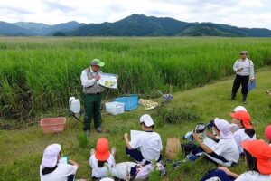 石巻市教育委員会主催の「ふるさと子どもカレッジ」において、プログラム前半の「生き物観察」の運営補助、後半の「北上川のヨシ原の生き物」の講師を行った。