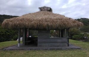小笠原諸島に広く自生する小笠原固有種オガサワラビロウは小笠原開拓以来その葉が建物の屋根・壁材料として利用されてきた。ビロウの葉による建物は小笠原諸島の原風景であり、通気性・断熱性に優れ、素材は付近の木を切ることなく、葉だけの採取で森林を痛めることなく、又葺き替え時には、古い葉は焼却せず土に返すもので、自然環境を破壊せず継続的に利用しているものである。公園の東屋などの屋根改修に積極的に利用するよう管理者に働きかけ定期的改修が始まった。