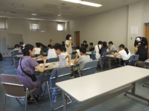夏休みの例年人気の行事として行いました。制作数を例年の半分の10組に絞って、感染対策を講じて行いました。低学年は保護者と一緒に参加しました。