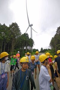八坂かっぱクラブは年6回程度、八坂小学校の生徒28名で構成され、実行委員会形式で運営している「森・川・海」のつながりや自然の大切さをフィールドワークを中心に学ぶ団体で、今回はメインとなる川の水源から河口干潟までを体験観察する活動で、今回は特に水源近くの山にできた風力発電を見学し、再エネについても学んだ。第3回市外研修では男池に行き森と水について学んだ。第5回は守江湾清掃、第6回は森の駅「かしのき山」で地元の人が大切にしている山の暮らしを学んだ。第7回は防災について学び防災食を作って食べた。