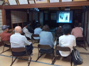 ゲンジボタルやヘイケボタルは身近な水生生物の代表であるが、生息環境が失われつつある。そのことを憂い、蛍の発生時期に合わせて蛍の鑑賞を行うだけでなく、蛍とその生息環境の保全に関心を持ってもらうべく、発生地の住民の方に対し蛍に関する話を行った。2025年のシーズンには日野町内の鎌掛(かいがけ)、三十坪(みそつ)、日田の3か所にて行った。