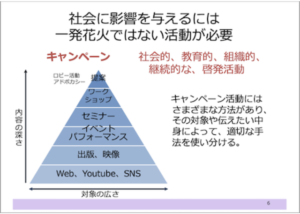 持続可能なまちと交通をめざす再生塾主催の富山県高岡市内でのセミナーにおいて、「社会を変える市民の活動と戦略づくり」のテーマで講演を行いました。活動をいかに組み立て戦略的に社会を変えていくか、副代表を務める「やさしい交通しが」の活動を例として話題提供しました。「活動で足りなかった点がわかった」「無理せずできることを見極めて実行するということが必要だと思った」等の感想がありました。(参加約30人、30分)https://kuunoru.blog.jp/archives/29341489.html