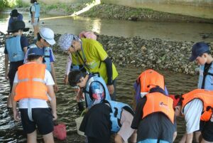 実体験から川の環境について、心に刻む体験を行う。