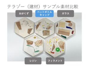 建築系学生による木の端材,木屑やレジン等を用いた建材サンプルやバードコールの制作を支援した。 セメント等をベースに骨材や顔料を練りこみ,研いで仕上げたタイル状の表面に,木の端材や木屑,ペットボトルキャップ,レジン等の配合を検討した結果,多様な色のペットボトルキャップと木の端材が視認性・意匠性にも優れ有効と考えられた。 バードコールは木造住宅の接合部に使われる「込み栓」等を活用し,木部表面に穴を開けてレジンを充填してアクセントとした。いずれも端材の有効活用で環境配慮に貢献するデザインである。