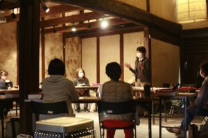 徳島県三好市地域交流拠点施設「真鍋屋」みんなのスペースにて、参加は地域住民18名の参加