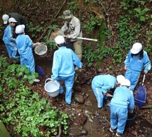 特定外来生物ウチダザリガニの捕獲を行う。6月~11月まで月1回(6月からは各月1週間継続捕獲)。参賀者は関連の各行政機関(環境省、県、村)、大学、民間団体、企業など。前日に捕獲網をかけ当日2回カゴ引き上げ。捕獲数確認。ウチダザリガニの移動許可(環境省)を取り焼却場処分をしている。絶滅は出来ない。増殖しない対策をとるしかない現状である。