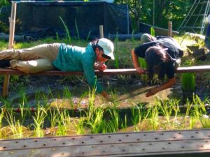 田んぼを手作りし、黒米の稲を植え付けました。