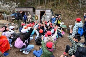 このタイトルでの当該里山イベントに5つの近隣小学校の親子が「自然不思議クイズ」、「里山自然探検・散策」、「自然お遊び体験」、「カートンドック作り」等で里山での楽しい一日自然体験をした。