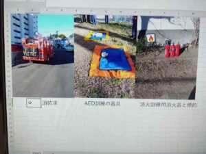 1月に防火管理者として消防署の援助で国家公務員3宿舎の自衛消防隊消防訓練を行った。通常の避難、通報、消火に加え、AEDを用いた訓練も行った。各宿舎10人以上の参加で、防災意識の向上も図れた。