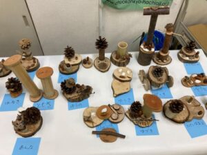 市内で集めた、木片・ドングリ・松ぼっくり等を使用し、好きな物を作る。