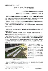 令和7年に発表した「工場長からの贈り物」の主な内容 1月:中防の正月 2月:小さなお客さま 3月:煙突改修工事の説明会 4月:チューリップの栽培実験 5月:最初の贈り物 。「工場長からの贈り物」は連載36回で終了。