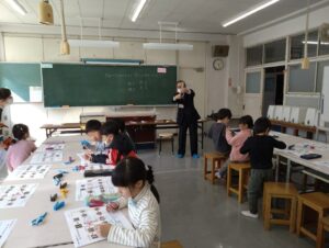 牛乳パックを羽に加工、ストローを軸にした竹とんぼの工作。どのように羽を曲げると良く飛ぶのか、児童に試行錯誤してもらい、楽しく遊びながら学ぶ
