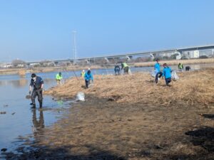 中川遊水池に散乱しているゴミを燃えるもの、燃えないものに分け、回収しました。 地元の中学生、教員、環境保全団体、地方自治体など、130名を超える参加者がありました。