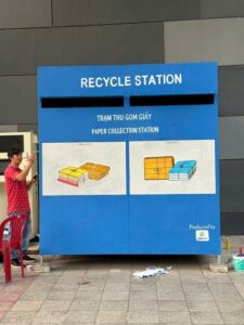 ベトナム・ホーチミン市のイオンモールにおいて展開されたリサイクル促進事業「エコステーション」に関する活動に参画しました。