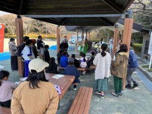 小学生・中学生を対象に身近に見ることができる竹について紹介し、昔から日々の暮らしに必要な資源を身近な森林から得てきたこと、そのことが地域の環境を保全してきたことを解説した。近年では化石燃料へのエネルギー転換や身近な森林資源を利用しなくなったことで、私たちの暮らしとの距離ができたことから最近では獣害などの問題が生じており、私たちの暮らしの中で森林資源を利活用することがこれからの地域の環境保全にもつながることを伝えた。竹工作ではノコやナタなどの道具を使って安全な道具の使い方を学んだ。