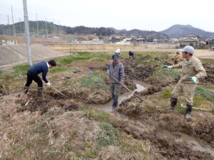 コウノトリの餌場となるビオトープの改善作業