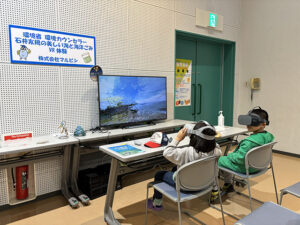徳島県立の「あすたむらんど徳島」にて催された『サイエンスフェア2025』へ1日のみ出展し、10:00〜16:00の間に子ども連れ家族を対象にVRゴーグルを使った海洋プラスチックごみについての環境学習を実施しました。VRゴーグルでは、徳島県にある世界最大級のコブハマサンゴ「千年サンゴ」の海中映像と、徳島県で一番酷いと言われる海洋漂着ごみの海岸(小池海岸)の映像の両方を体験してもらい、徳島県の海の現状を学習してもらいました。体験者数は合計子ども大人合計で38名となりました。